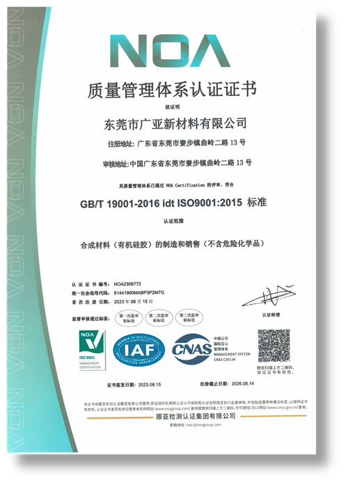 东莞市广亚新材料有限公司对外成立于2022年,位于东莞市寮步镇,是东莞市泰亚集团下的子公司。公司致力于高新材料领域开发及应用创新,专注于硅橡胶材料的研发、生产及销售,主营产品为硅橡胶泡棉、粘接型硅橡胶、特种实心硅橡胶、导热硅橡胶、导热材料及PU结构胶等,产品主要应用场景为新能源汽车、能源储能、轨道交通、电子通讯等领域。